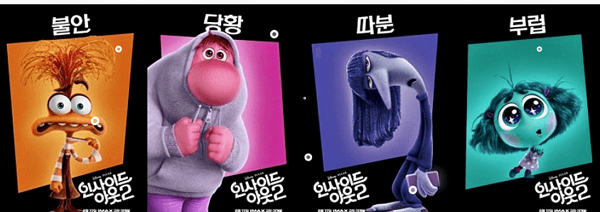- 주요 등장인물: 라일리와 새로운 감정들 (불안이, 당황이, 따분이, 부럽이 등)